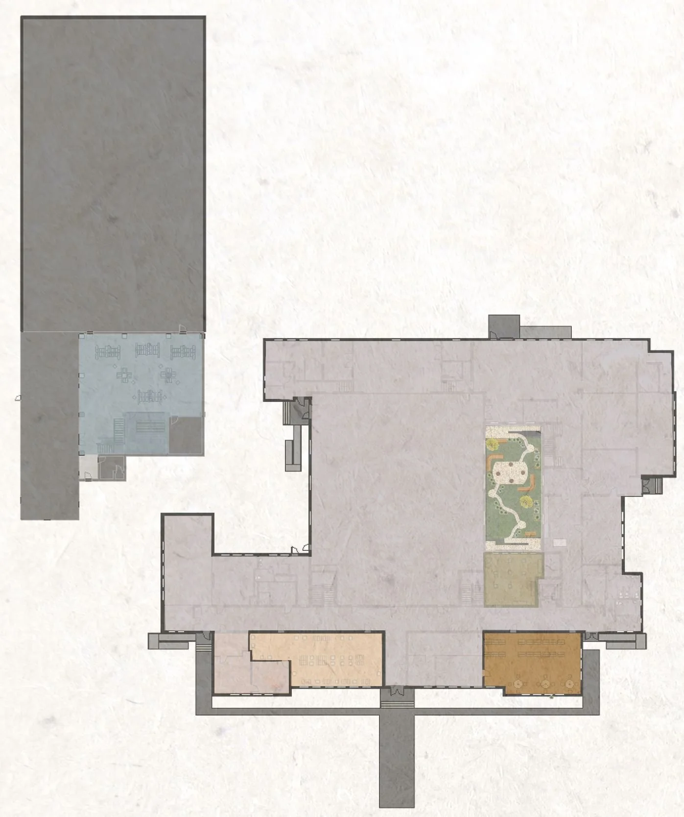 Proposed design for museum, library, courtyard and shop levels 1 and 2